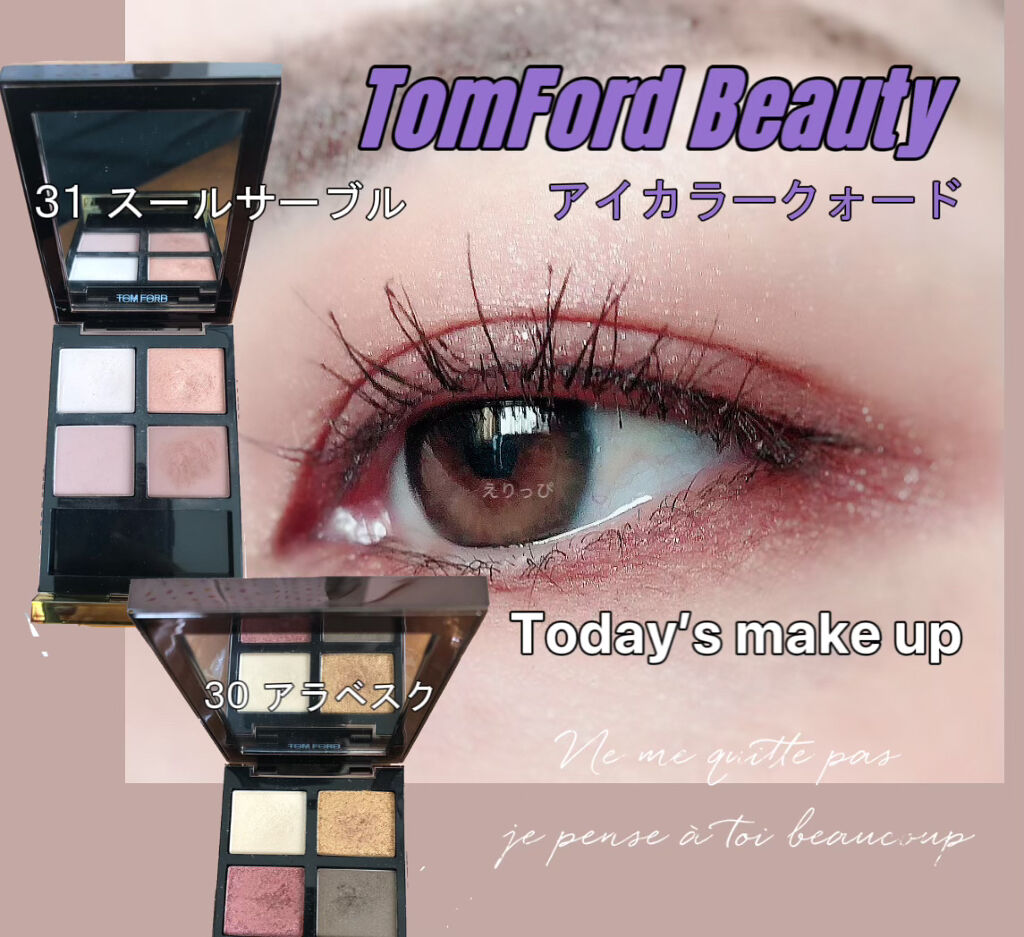 TOMFORDBEAUTYアイカラークォード31 スールレサーブル見た目は青味よりかなと思うけど実際はニュートラルなピンクブラウン系ふんわり発色で失敗しにくくブレンデングし易いマットだけて仕上げるとナチュラルにラメをプラスして華やかにa.ピン...