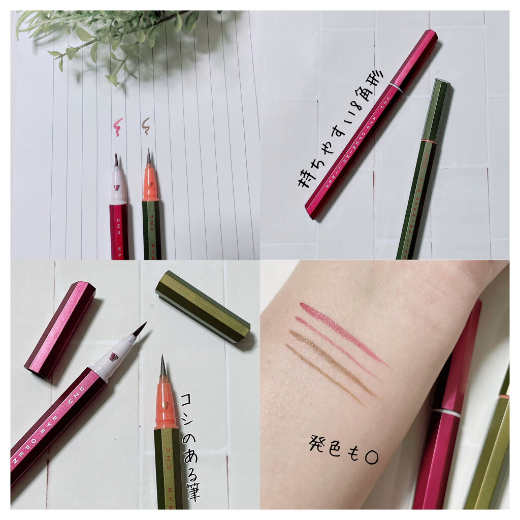 - 〇未体験の描き心地「大和匠筆™」採用。 〇「WP Film™」の超テク。 水、湿気、皮脂に強く、どんな環境でも美しいラインをキープします。 〇ぬるま湯で簡単にオフ。 〇人間工学に基づいて持ちやすさを追求した八角形フォルム。 〇色素沈着しない、革新の染料フリー。 低刺激性(アレルギーテスト済 • パッチテスト済)※ UZU is 100% cruelty-free. ※すべての方にアレルギーがおこらないというわけではありません。 VEGAN / グルテンフリー / アルコールフリー