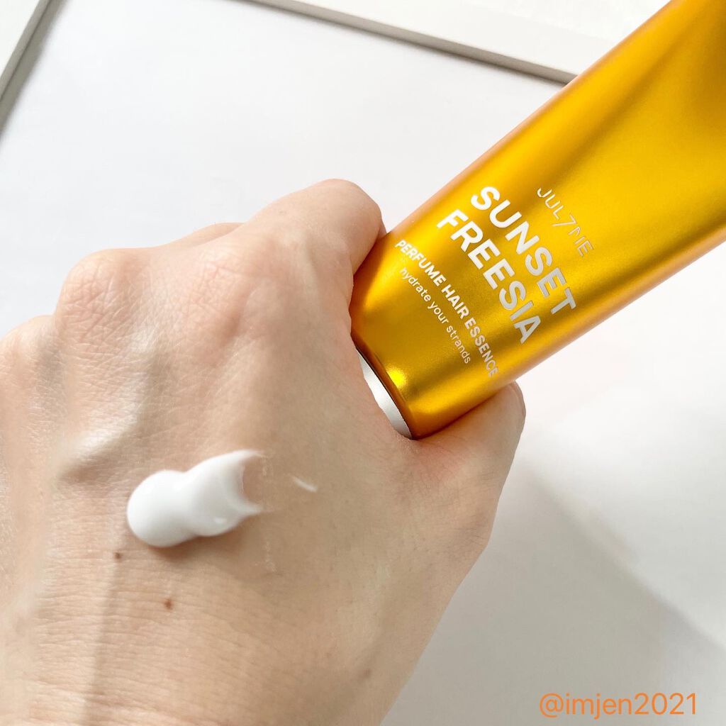 フリージアの香りと甘くみずみずしい梨の香りが作り上げる清楚なフローラルフレグランス 白色の伸びが良いクリームで軽いつけ心地、蓋を開けるとサンセットフリージアがふんわり香ります✨️ 普段は香水の匂いが強くて苦手でつけないから、ケアしながらパフューム効果もある製品は便利🌸