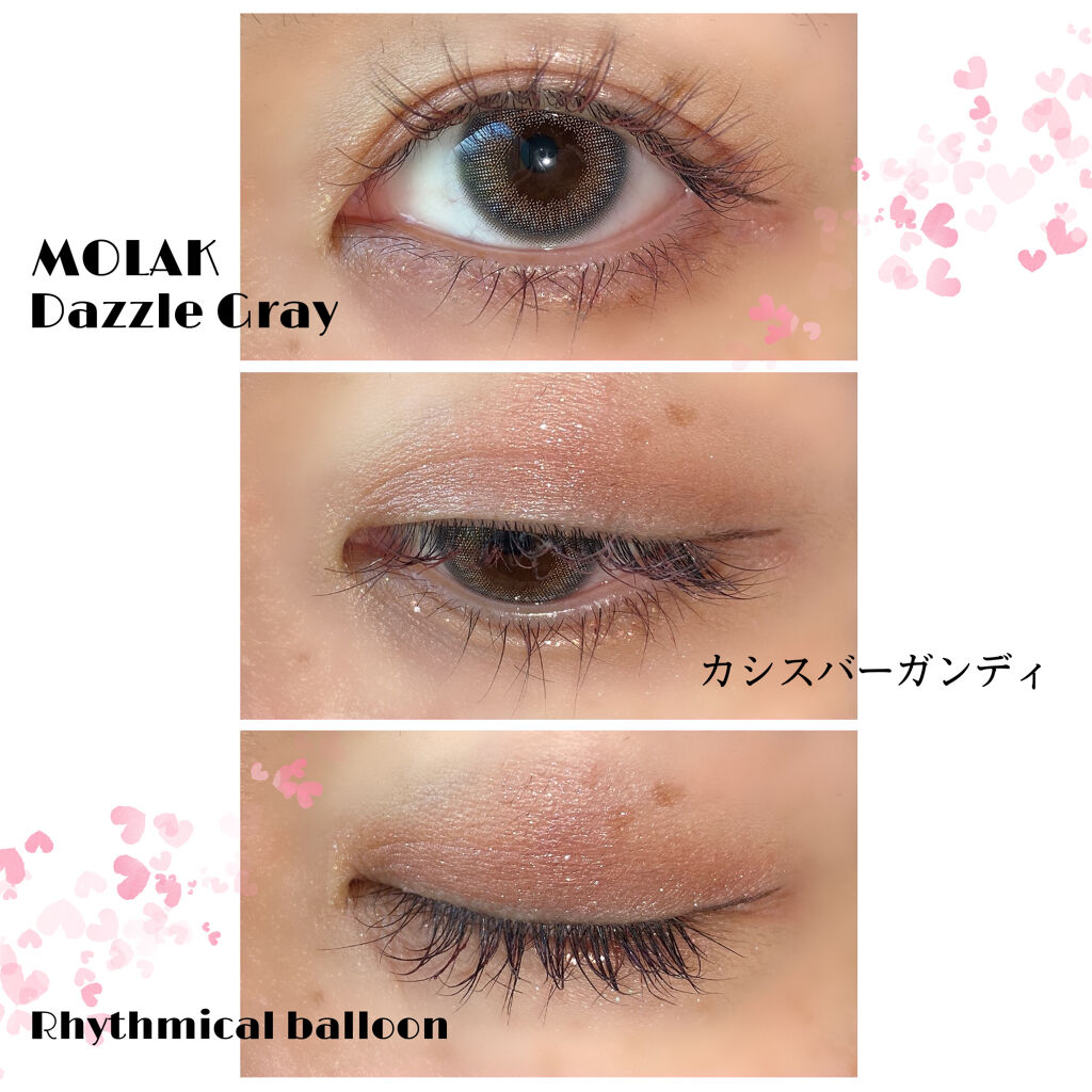 カラコンは ナチュラルに馴染むLARMEのMilky Way 。 あまりにも馴染みすぎてて 、美容師さんに「カラコンなの!?」と驚かれた (*´ `*)笑 たまに乾いた感じがするのがたまにキズ 、、目薬常備 。 ブルーのマスカラは クールな大人っぽい印象になるよね 。目尻にのみ銀色ダイヤ使用 。 アイシャドウの深飾は ひたすらかわいい … 😮💨 左上をアイホールに塗って 、右上を二重幅と涙袋 、左下を目尻側1/3に塗って 、右下をアイライン代わりに入れたら完成 ✨ 右下 めっっちゃラメも可愛いけど 、難しい 〜〜!