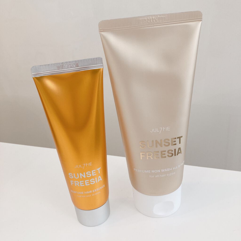 フリージアの香りと甘くみずみずしい梨の香りが作り上げる清楚なフローラルフレグランス 白色の伸びが良いクリームで軽いつけ心地、蓋を開けるとサンセットフリージアがふんわり香ります✨️ 普段は香水の匂いが強くて苦手でつけないから、ケアしながらパフューム効果もある製品は便利🌸