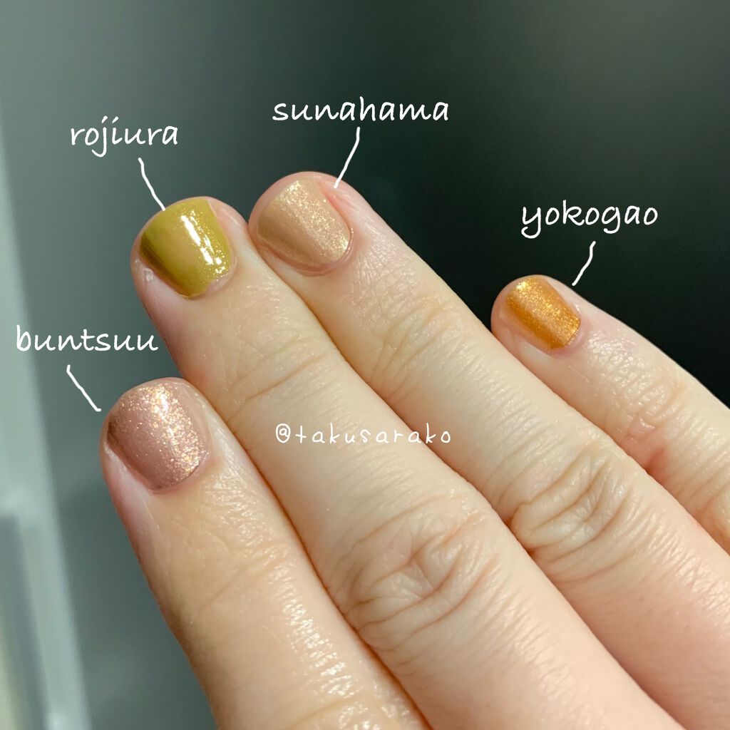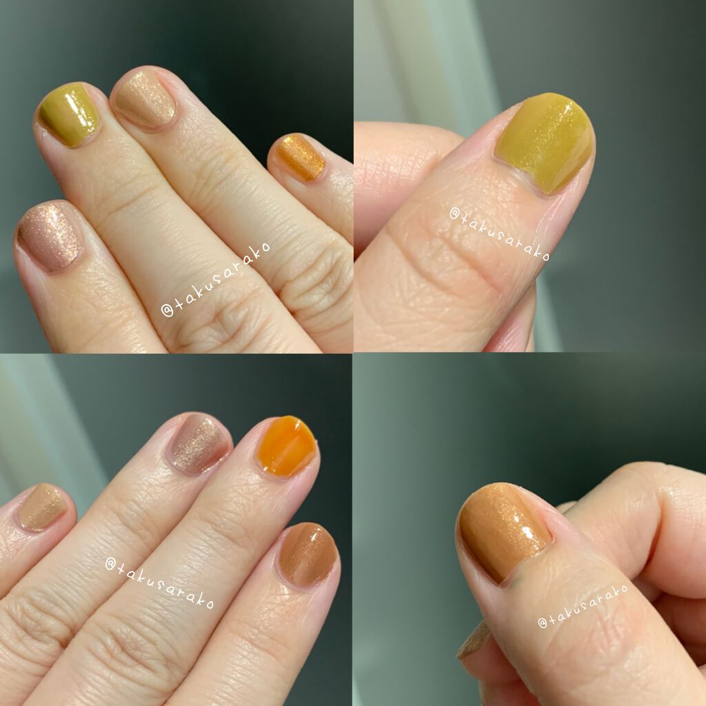 OSAJIは全部オシャレカラーだった‥‥どれも最高すぎる☺️❤️オサジ今回のネイルコレクション選べないね。選べないんだけど、蜜の1度塗りが特に好きです。n番煎じの比較🤳#21Juuniji〈12時〉#08Jikuu〈時空〉#22Mon〈門〉コ...
