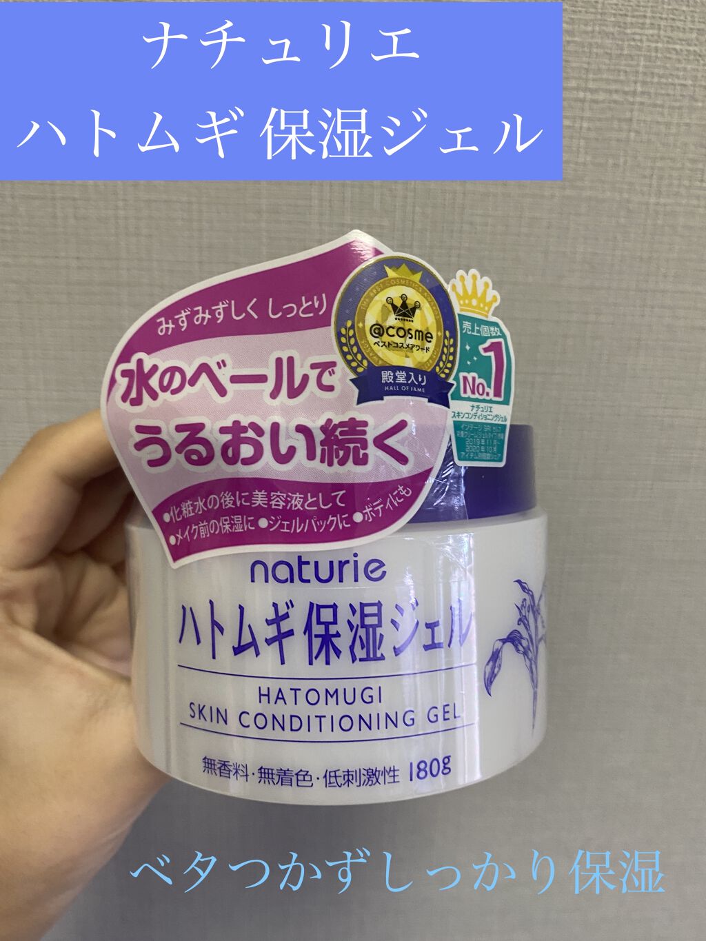 - 肌にうるおいを与えてスキンコンディションを整える、 天然保湿成分ハトムギエキス配合の保湿ジェルです。 ジェルを肌にのせると液状に変化して、肌表面に「水の保護膜」を形成。 継続的に角質層に水分を送りこむので、うるおいに満ちた肌が続きます。 油分を抑えたみずみずしい使用感でべたつきが気になりません。 基本は化粧水の後にたっぷり使ってください。 メイク前の保湿やお風呂上がりの「とりあえず保湿」、ボディにも。 ●使用方法 ■基本は、化粧水の後に美容液として 化粧水の後にたっぷり使ってください。 500円玉大の量を2回重ねづけするのが目安です。 その後、お好みで乳液やクリームを重ねてください。 ■乳液やクリームのべたつきが気になるときに 水の保護膜でうるおいをキープし、べたつきません。 ■メイク前の保湿ケアに 油分の多いスキンケア品を使うとメイクがくずれやすいときは、 メイク前の保湿ケアとしてもお使いいただけます。 油分に頼らず肌のうるおいを守り、ヨレやくずれを防ぎます。 ■お風呂上がりの「とりあえず保湿」に ゆっくりスキンケアができないときは、 素肌に直接なじませて乾燥から肌を守ります。 油分が少ないので、後から行うスキンケアの浸透(※)を妨げません。 ※角質層まで ■ジェルパックでさらにうるおい 特に乾燥が気になるときは、 500円玉大3枚程度の量を顔全体にのせて 約5分間経ってから、肌になじませてください。 ■おやすみ前の「重ねづけ保湿」に 500円玉大の量のジェルをもう一度なじませることで、 睡眠中の乾燥を防ぎます。 ■ボディにも べたつかないので、毎日の入浴後や日差しを浴びた後などの ボディのスキンケアにもおすすめです。