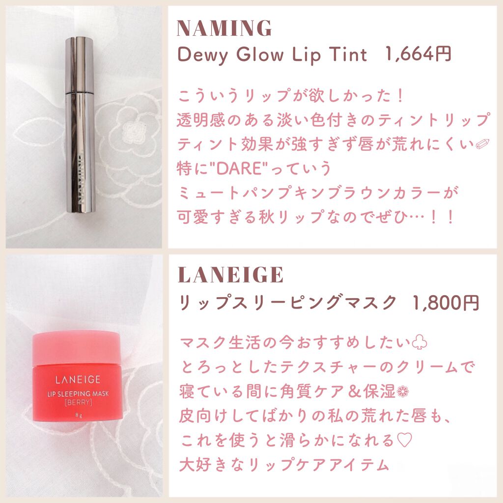 NAMING. デューイ グロウ リップ ティント | 2,080円(編集部調べ) |