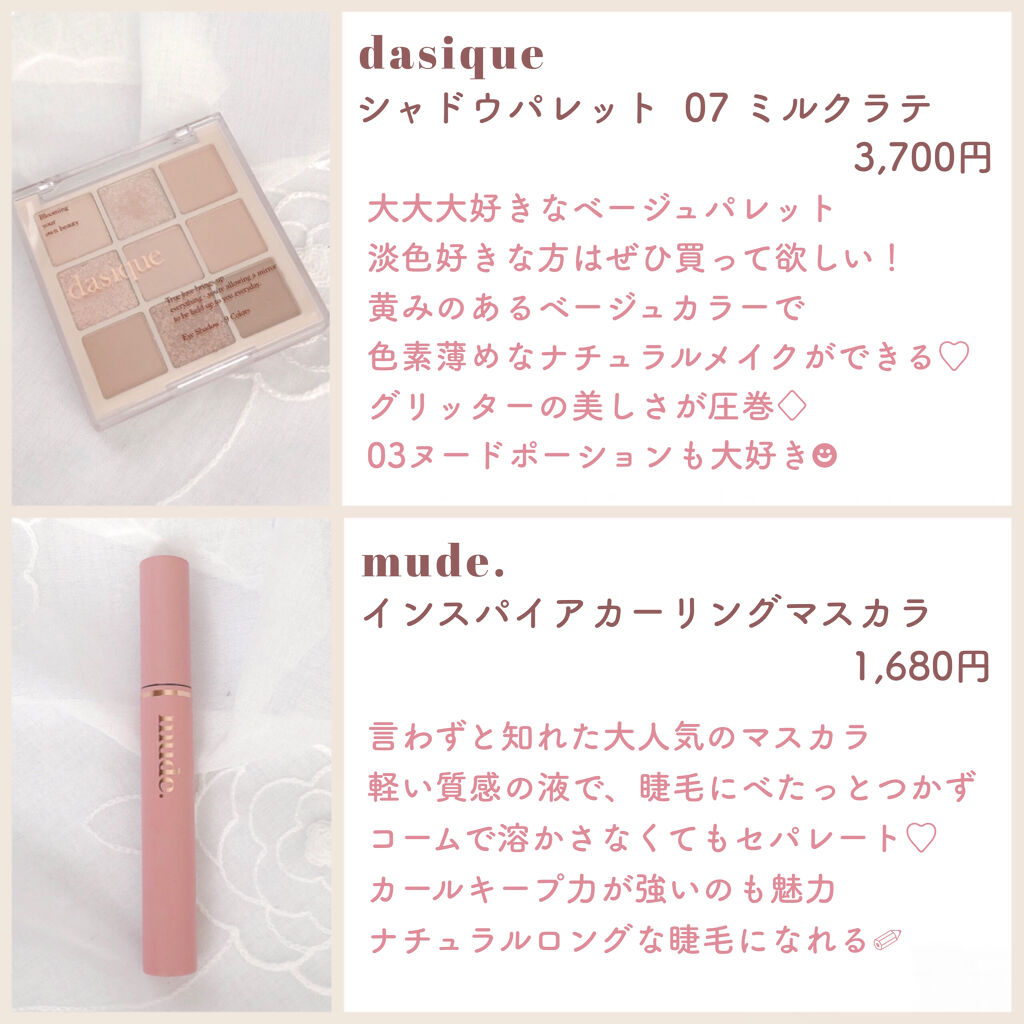 買って後悔しない。 きらきら感とくすみピンクベージュが良すぎて 目元に載せた瞬間、このアイシャドウの虜になります🥀 普通にまぶたにのせるのもいいけれど、下まぶたにつけるとよりアンニュイな雰囲気に💭 ぜひ手に取ってみて下さい❕
