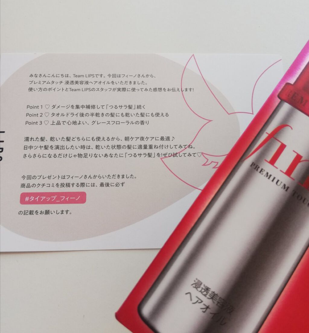 #タイアップ_フィーノみなさんこんにちは!かれん🌼です 以前プレゼント企画に応募させていただいたのですが...なんと当選させていただきました😭ありがとうございます🥺🌱今回はリップス様を通しフィーノ様からフィーノプレミアムタッチ浸透美容液ヘアオ...
