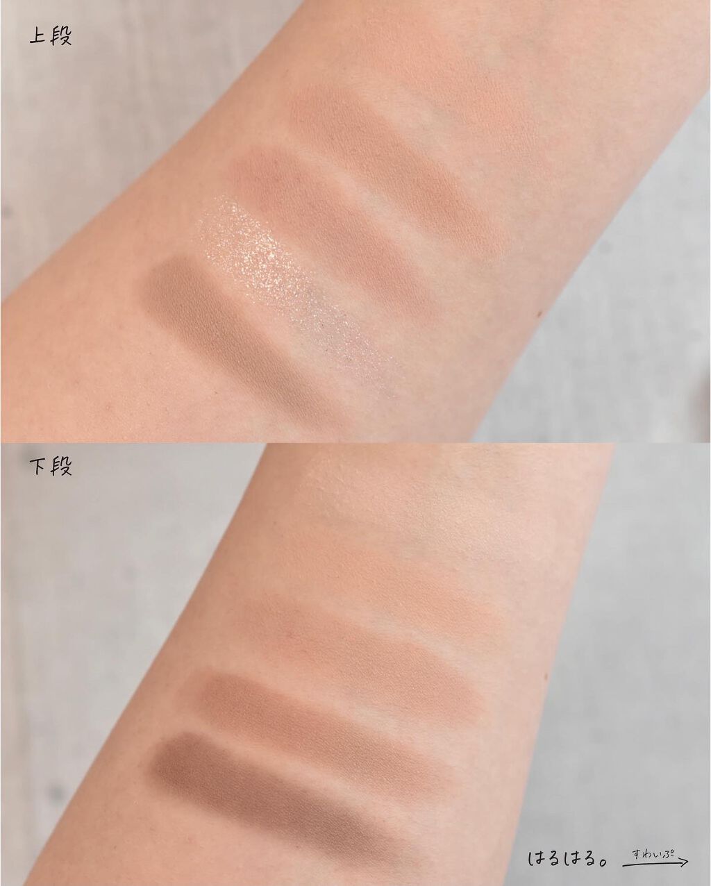 グリッターの輝きが最高にかわいい! 控えめにも華やかにも仕上がる万能パレットの魅力と注意点 さらふわ質感で肌馴染みの良いマット チラッと光るラメが儚く可愛いシマー キラッキラに目元を彩るグリッター 他のカラーは肌なじみも、色の耐久性もよく、涙袋の影にぴったりな色味があったりと、かなり使い勝手は良いのでトータルでは気に入っています🥳