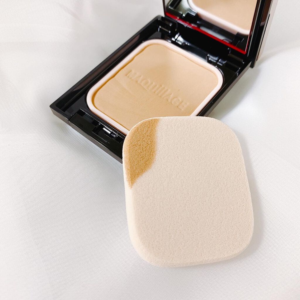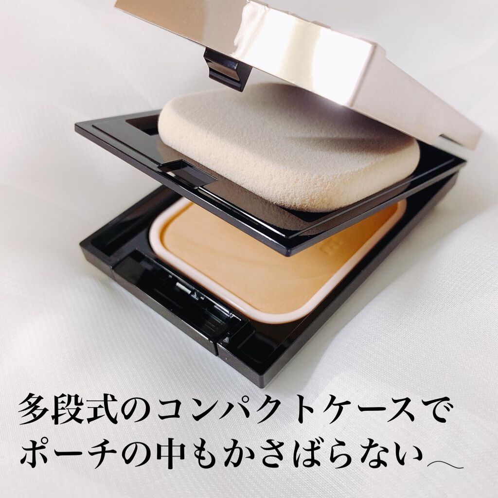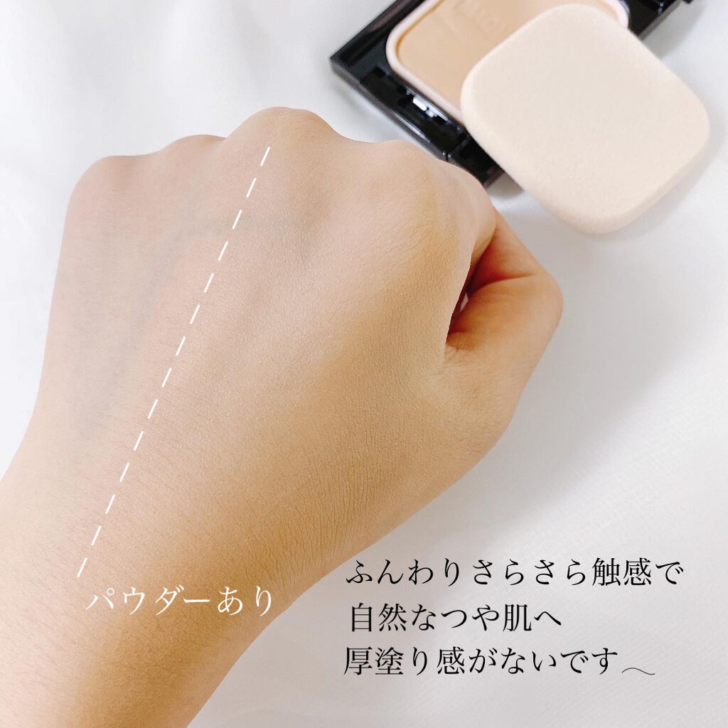 ふんわりとした仕上がりながら自然なツヤ感を演出するパウダーファンデ◎ 資生堂独自の「ムースプレス製法」により、美容液水とパウダーをムース状にして固めた軽やかなテクスチャーが特徴です。 肌に溶け込むようななめらかなフィット感で、毛穴や色ムラをふんわりとカバーしてくれる感じ。