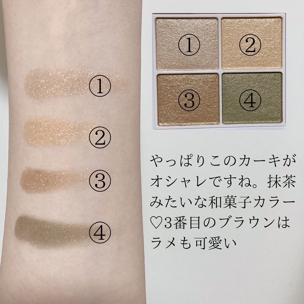 - しっとり密着!リッチな質感! 透けツヤ4色アイシャドウ シルクのようなツヤ感とスフレのようななめらかさ。 繊細なパールが配合されたやわらかなしっとりパウダーで、上品な目元に仕上がります。 ※2023年8月〜パッケージ順次リニューアル。
