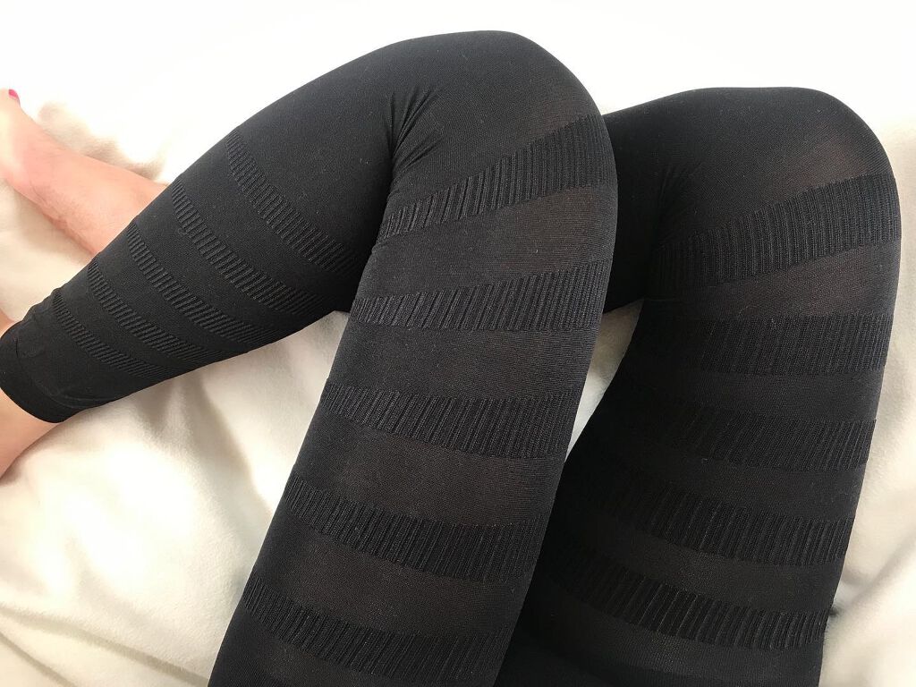 見た目はデニムなのに、強着圧❣️ これ1枚で、デニムスタイルと着圧ケアが完結するレギンスです✨ キュッと引き締まる感じですが、キツさは気になりません✨ 足全体を引き締め、骨盤周りも引き締めて、お腹をしっかりおさえてくれる着圧構造になっているそうです。