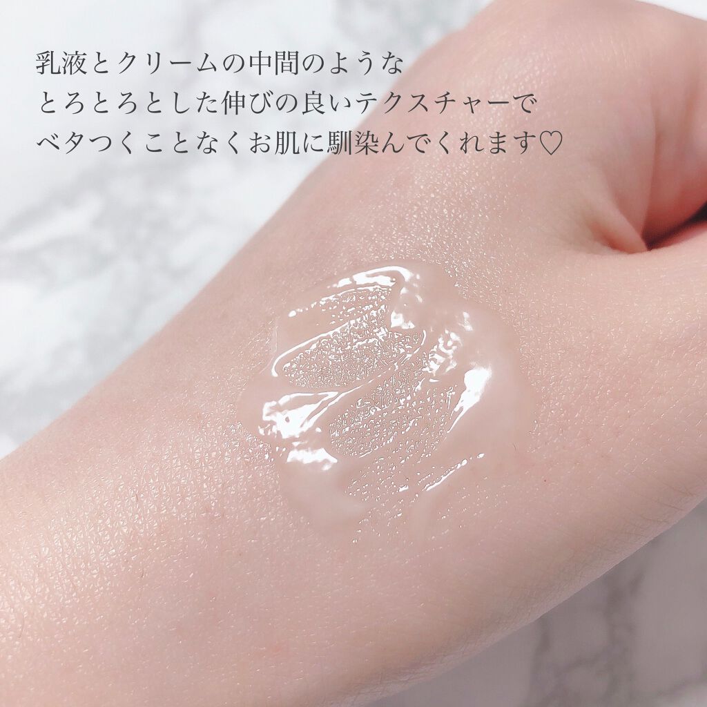 とろっとしたテクスチャー。とろみはあるけど、馴染ませるとサラッとして、ベタつきにくかったです。しっとりして、いつもよりハリがあるように感じました。 昼は乾燥などの外的要因から肌を守り、夜はダメージをケアしてくれるそうです。