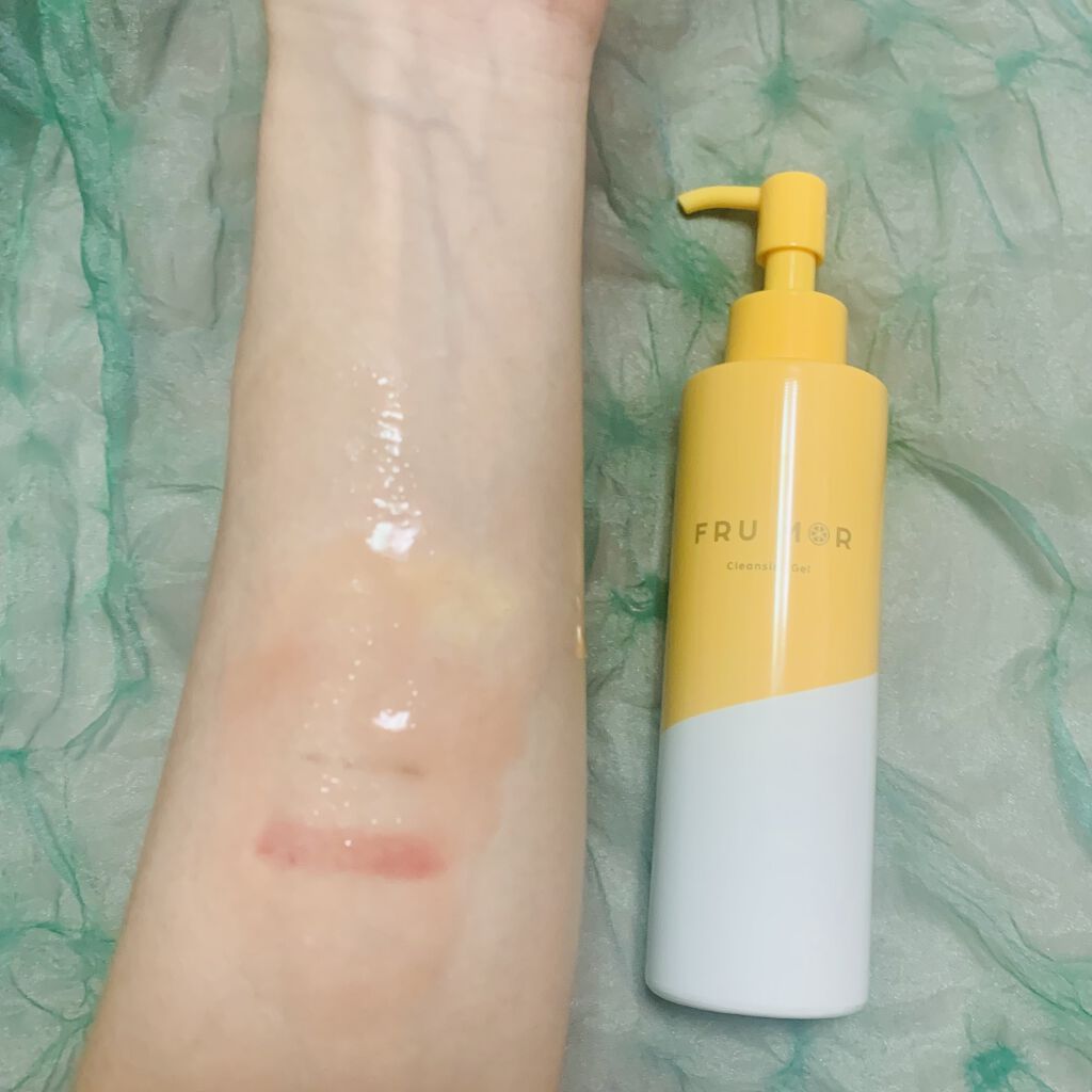 FRUMORフルモアクレンジングジェルぷるぷるのジェルが肌の上で溶けるかのようにみずみずしく伸びていくさらさらとした使い心地のメイク落とし。パッケージには“クレンジング・洗顔料”と書いてあるので、おそらくダブル洗顔不要かな?と想像。ベースメイ...