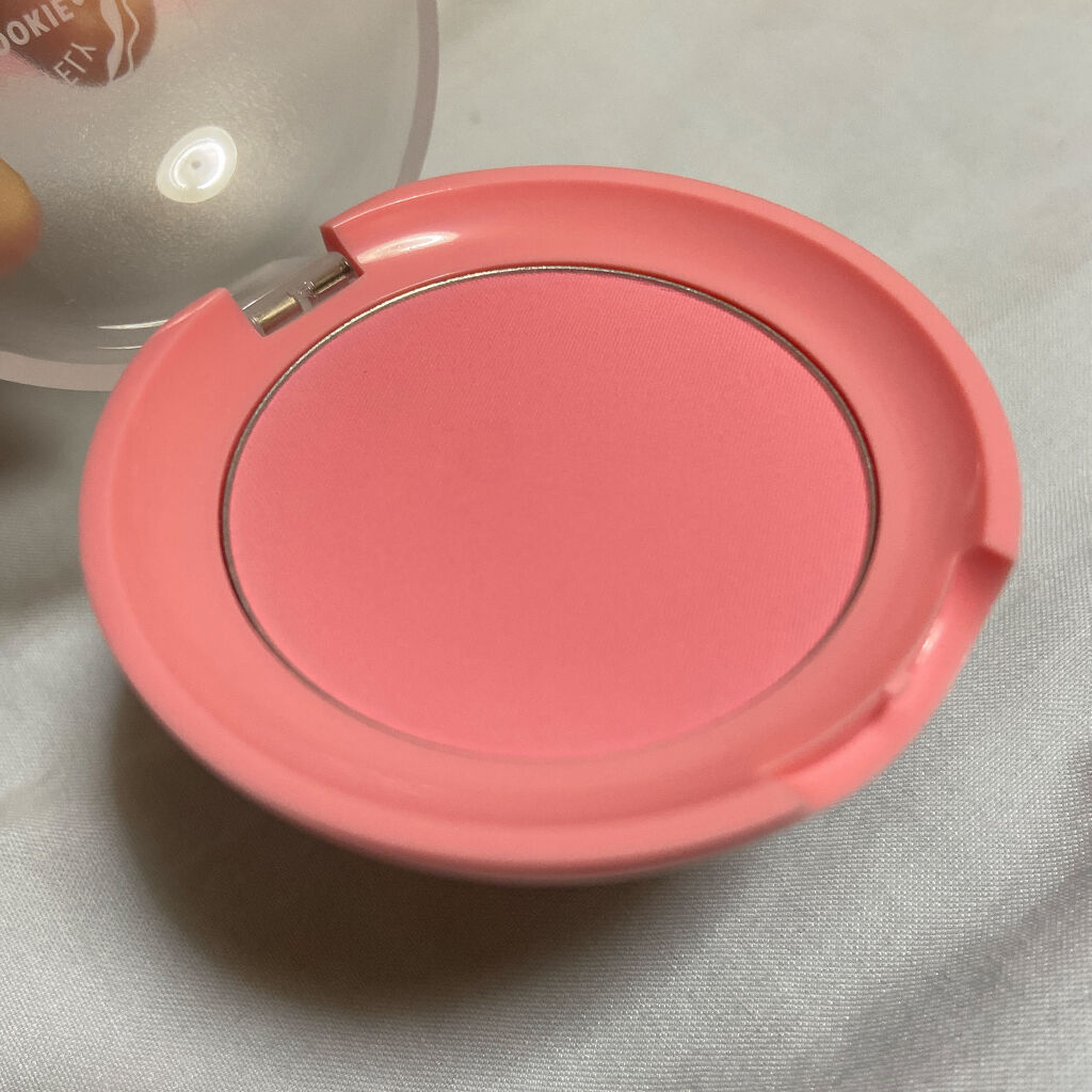 ラブリークッキーブラッシャーぽんぽんチーク PK004#チーク今使ってるチークです韓国コスメのラブリークッキーブラッシャーコロンとしたパケでふわふわのパフに可愛いリボンがついた仕様になっていますパフのリボンを掴んで使ってるけど実際にはどこを持...