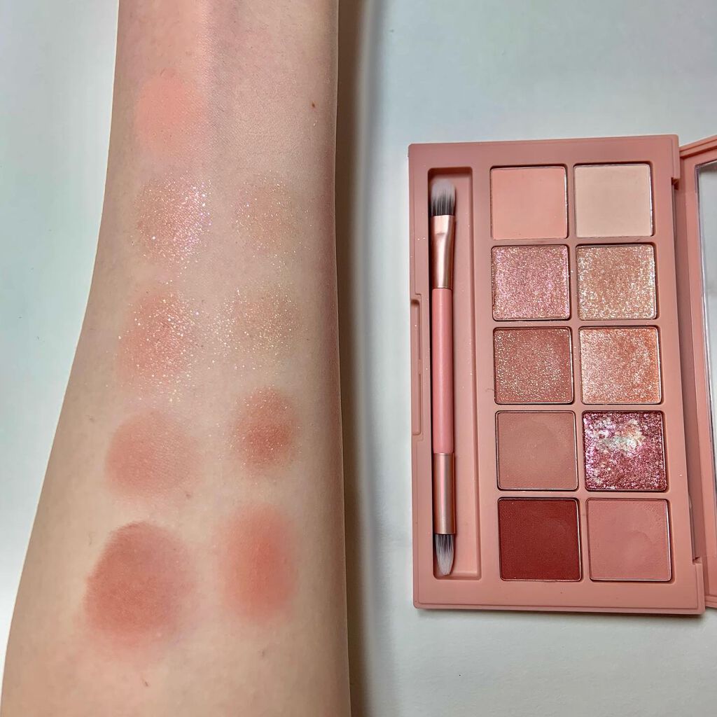 デイジークの人気の9色パレットです!マットカラーはふわっとした発色で粉質もほどよくしっとりしています。ラメもギラギラしすぎず粉落ちもしない上品なキラキラ感が出せます✨ 07 Milk Latte の色は1番淡い色が揃ったパレットで、右下の1番濃いブラウン以外はとても薄い発色です。かなりナチュラルに仕上がるのでデイリーメイクに使っています!同じベージュ系でもう少し発色して欲しい、という方は 03 Nude Potion がオススメです。