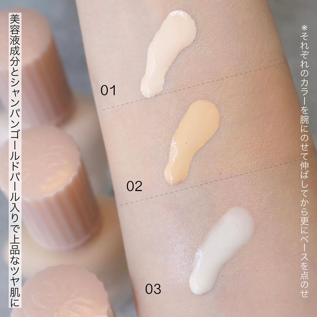 - 美容液成分約90%配合、濃密なうるおい感。 まるで生まれたて。 透きとおるような透明感と優美なツヤを、心地よく纏う。 全3色 SPF15 PA+(03は除く)