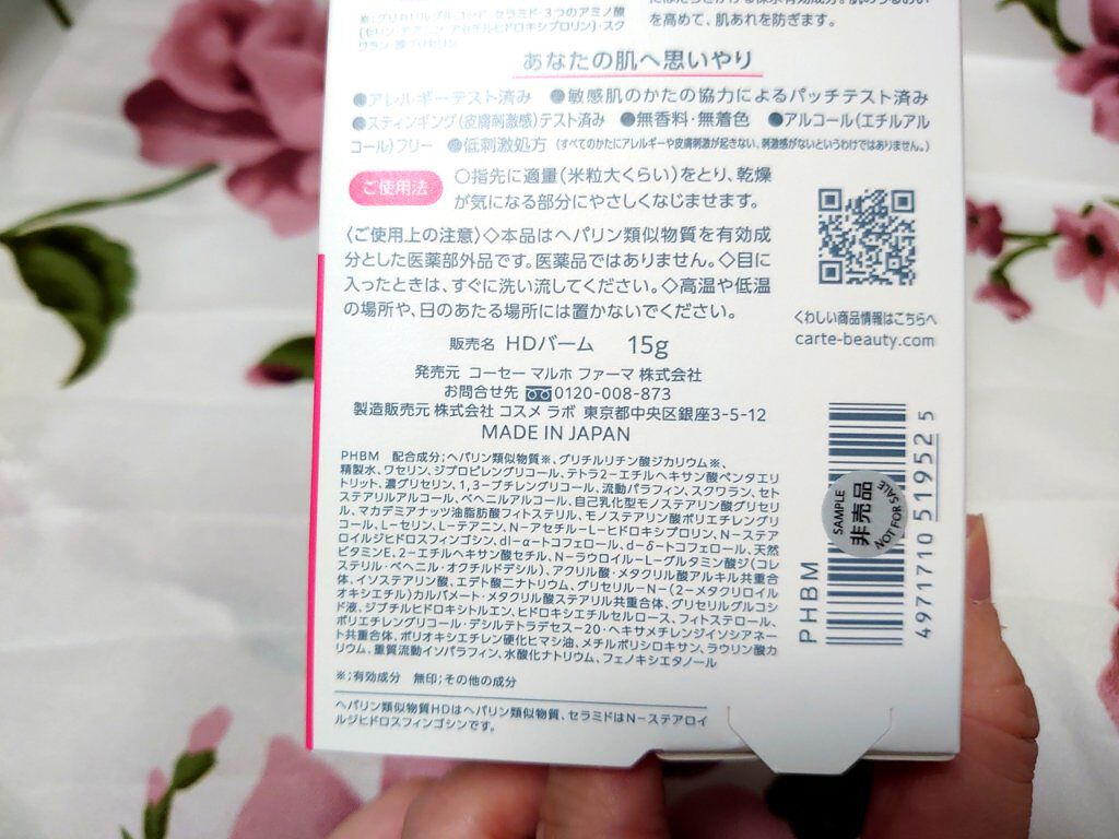 - 【高保湿バーム】 みずみずしくなめらかにのびて、ピタッと密着、うるおいラップ!どこでもうるおいを補給&密封する、携帯にも便利な高保湿バームです。 2つの有効成分ヘパリン類似物質HD※、グリチルリチン酸ジカリウムに加えて、密着&密封力に優れるワセリンやペースト油をシリーズ最大量配合。日中の乾燥やダメージから肌を守り、肌あれも未然に防ぎます。 高い保湿力と保護効果がありながらベタつかず、メイクの上から使ってもよれにくいテクスチャー、外出先でも適量が出しやすい細身チューブ。こだわり抜いた設計で、どこでも素早くうるおい密封し、いつでもしっとりなめからな肌に導きます。 朝のメイク前に、日中の乾燥に、マスクあれの予防に。あらゆるシーンの乾燥におすすめのバームです。 ※ヘパリン類似物質のこと <販売名:HDバーム>
