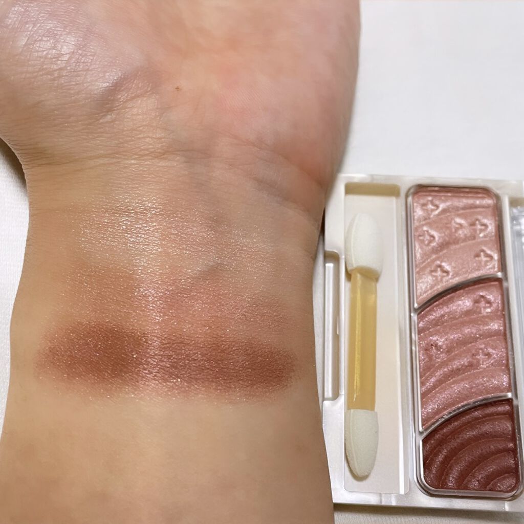 - 3色で簡単に明るく大きな目元に。 しっとり感触のアイシャドウ。 くすみを飛ばす明るさベース、ひとえ・奥二重の方でも幅広く塗れる肌なじみの良い中間色、 濃密高発色の締め色が目の輪郭を強調し大きな目元に。 微細パール配合でくすみを飛ばし、明るい目元へ。
