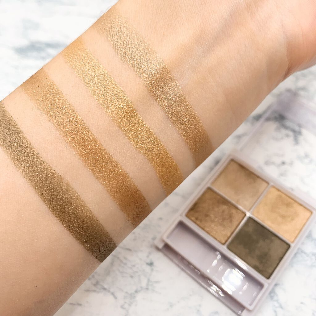 パノラマエリアを制すれば最強アイメイクができる どの角度から見ても綺麗な目元になるんです😳❤️ パレットの右上のカラーを、眉下や、こめかみ、頬骨あたりに仕込むだけで光が集まって立体感がでるの凄くないですか⁈⁈⁈ プチプラでこの完成度は素晴らしいすぎる😭💓 後は、右下もしくは左下のカラーを全体に広げて上まぶたの中央にラメ。アイライナーを引いてから締め色でボカせば完成☺️ 粉の質感もしっとりしていてパサパサしないので、なめらかで使いやすいです🙆♀️💡 これは1色は絶対に持っていても良いと思います🥺