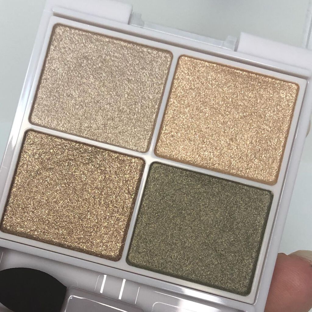 質感、粒子すべてが異なる4色グリッター🕊 発色は薄めでグリッターが主役のアイシャドウパレット✧* 大粒ラメは指で塗った方が綺麗に密着してくれます!! 全色可愛すぎる、、♡ マットシャドウにポイントで使っても絶対可愛い!