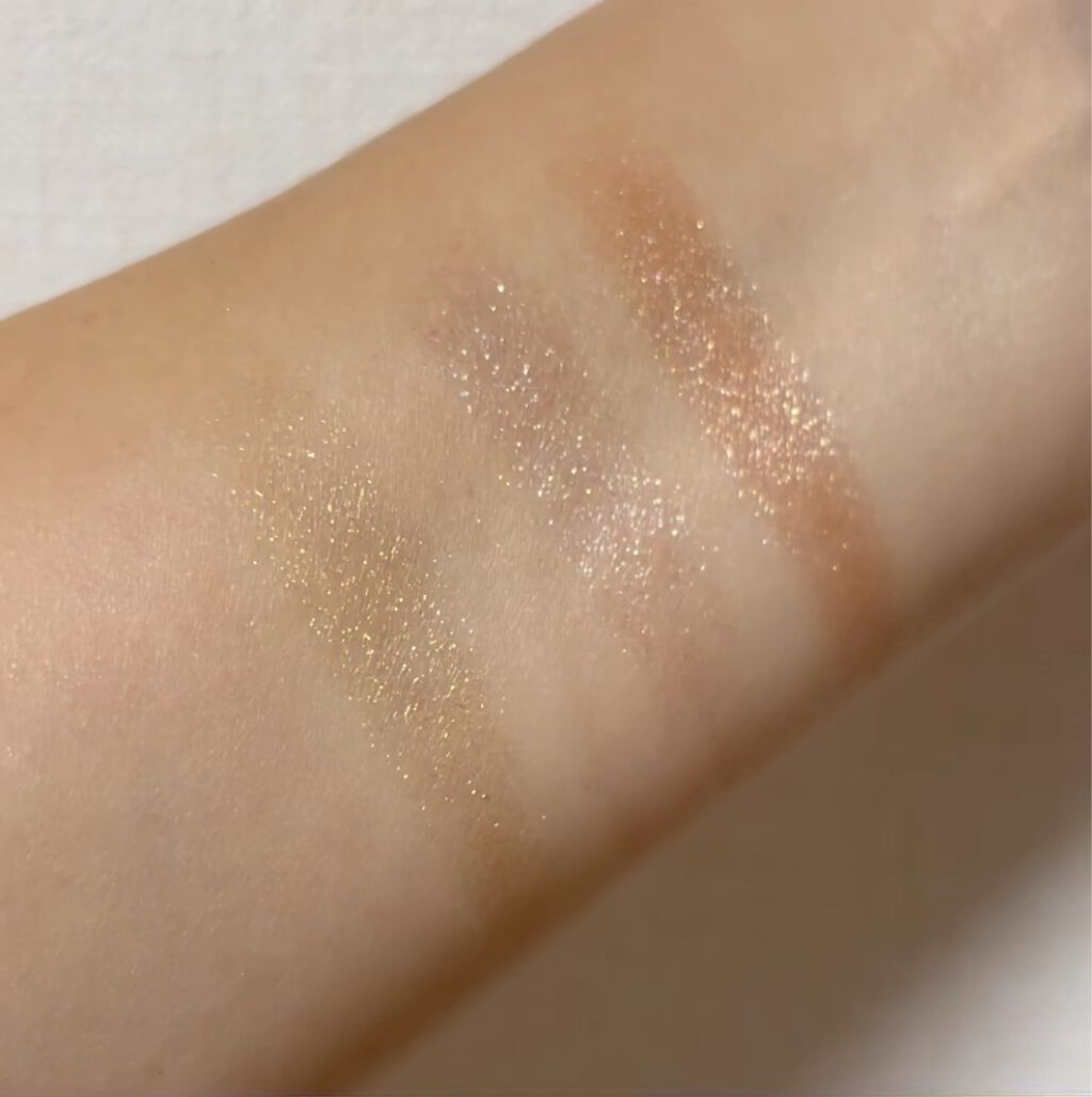 初めてのローラメルシェハイライト! 粉質の軽さ&しっとり感と輝きの綺麗さにすっかりファンになってしまいました。 見た目は少し色暗めかな…と思ったのですが、付けてみると淡いローズゴールドですごく肌馴染みが良かったです✨ 上品な輝きなので、ハッキリとしたメリハリ感が欲しい方は少し物足り無さを感じるかも。 オフィスメイクにはちょうど良いメリハリ感だと思いました⭕️