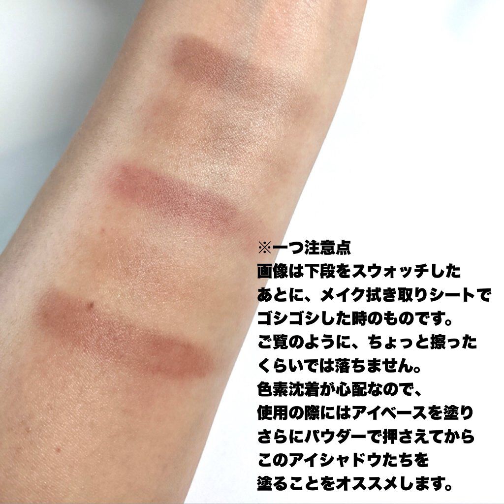 マットの発色をご覧ください。 マットでここまで発色するのって、珍しい。 特にパープル系のマットは、作るのが難しいらしく、ハイブランドでも発色がよくブレンドしやすいマットパープルを作るのに苦労するそう。 ですがこちらのaztkのマットパープルは、一塗りですんごい発色。 しっとりしているわけではないのですが、しっかり密着してくれる感じもします。 逆にパール系は少し発色優しめかな?と思いますが、ニュアンス的に使う分には問題なし。 ラメはギラギラのラメではなくチラチララメで、とっても上品。 いろんなシャドウと組み合わせて無限大にアイメイクが楽しめそうです。