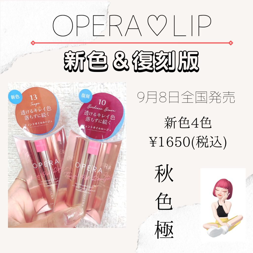 オペラ リップティントN 13トープ 最近暗髪にしてブラウンメイクをよくするのでトープを選択︎⸜❤︎⸝ こちらはオレンジ強めのブラウン! 美容オイルが入っているからか、するすると塗れてオイル感があって保湿リップしなくても1本でツヤツヤに✨️ 色持ちとツヤ感はめっちゃいいです◎ 濃すぎず薄すぎなくてムラになりにくいから塗り直ししやすいのもオススメ♡