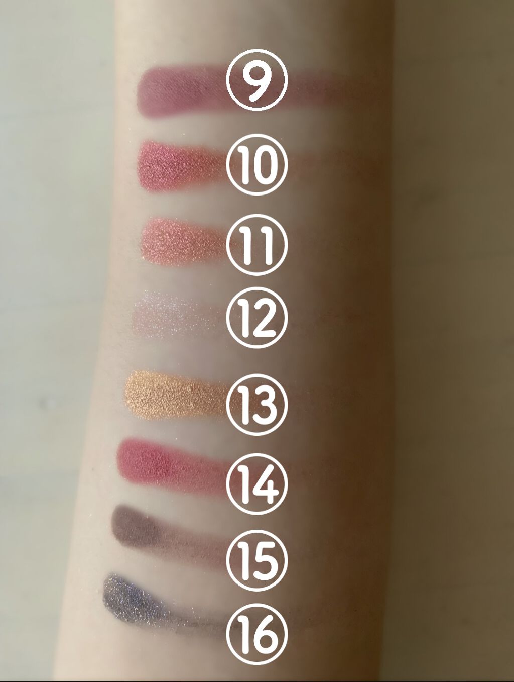 全体的に使いやすい色味のアイシャドウパレットです!🙌✨ 発色はどれもとても良いです! ラメも控えめで上品なものと、キラキラに魅せてくれるものの両方があるところもいい所です✨ 値段は 4180円 です!✨ 16色も入ってこの値段は魅力的ですよね!