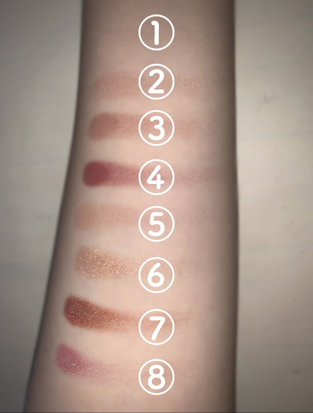 ①、②、⑫はラメがギラギラしすぎていなく、とくに⑫はゴールドラメで上品に仕上がります! ギラつかせたい時には⑦、⑧、⑨、⑩がとくにおすすめです! このパレットの色は全部使いやすい色味なのでとてもおすすめです!