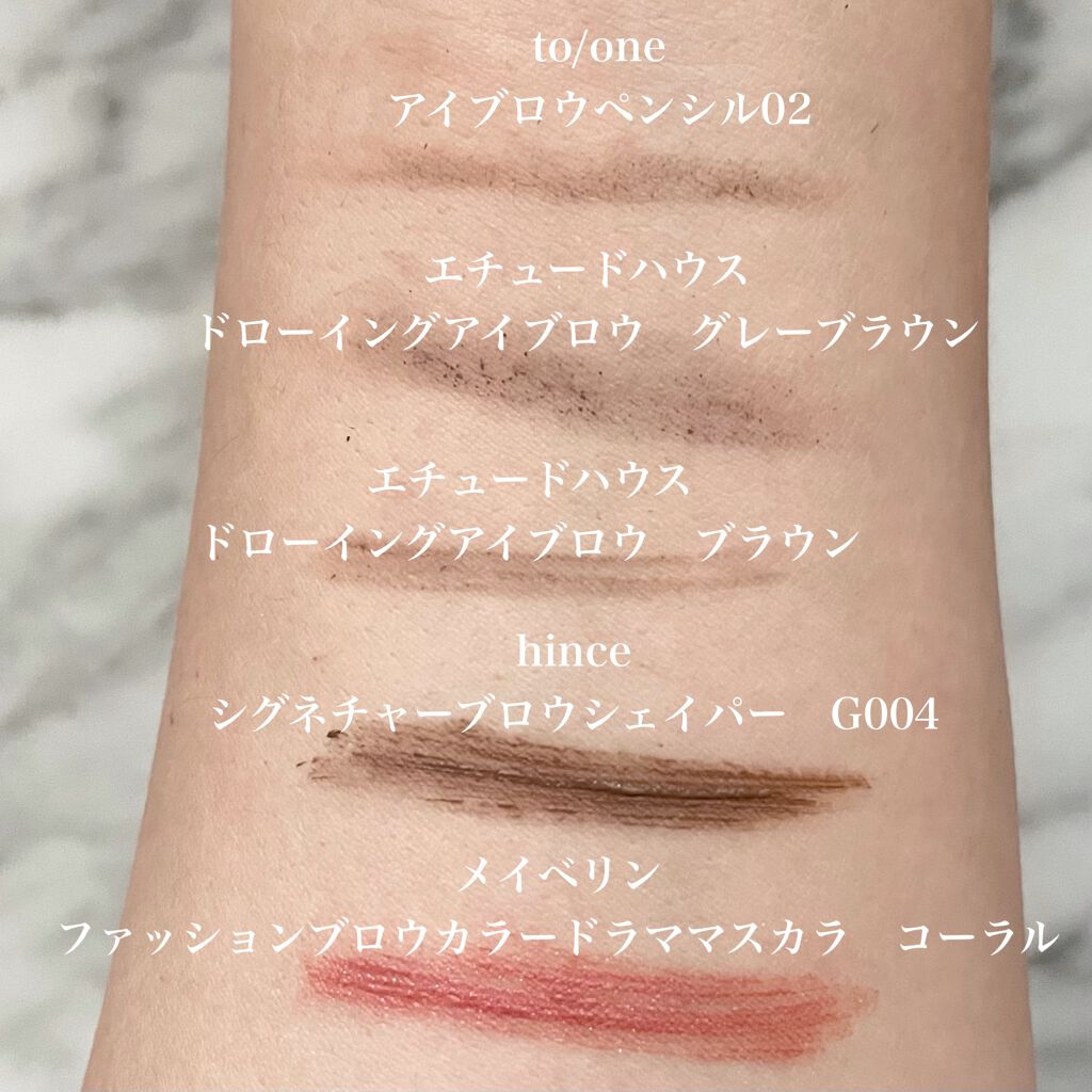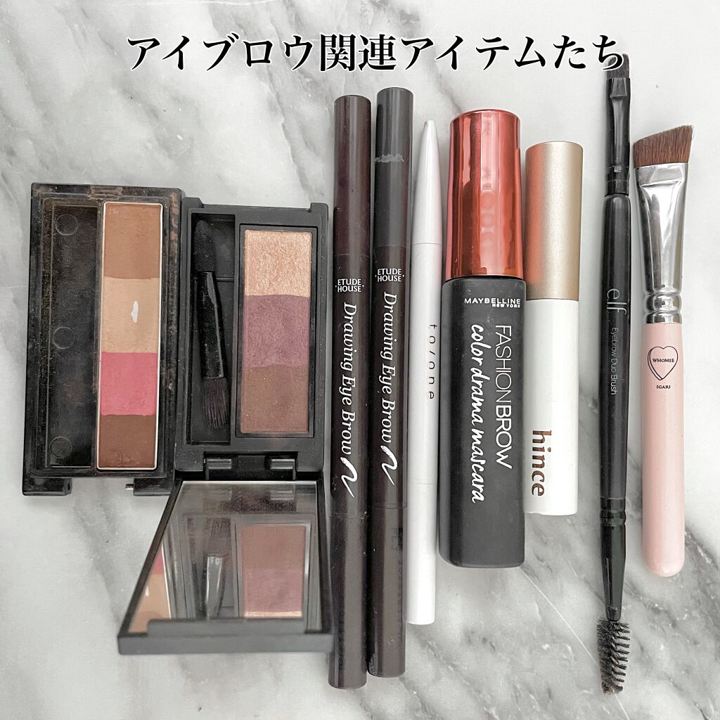 KATEは諦めたわたしに救いの手を差し伸べてくれた。 かなりしっかり色が乗ってくれます!!! 明るくなりすぎた😂 手持ちのペンシルで上から軽く色味を足して調整するといい塩梅になりました👍 KATEは人間らしい眉毛の色のままカラーリングできる。 他の色味も欲しくなっちゃう! 今回使用のライトブラウンはわたしのように眉毛一本一本がワイヤーみたいなひと(失礼😂)や、ハイトーンにカラーしてるひとにおすすめ! hinceのマスカラは剛毛でも毛流れがきれいに作れる! マスカラで毛流れ変えられたこともなかったから🤣 ペンシルはエチュードとトーン。 ブラシはフーミーとELFです☺️