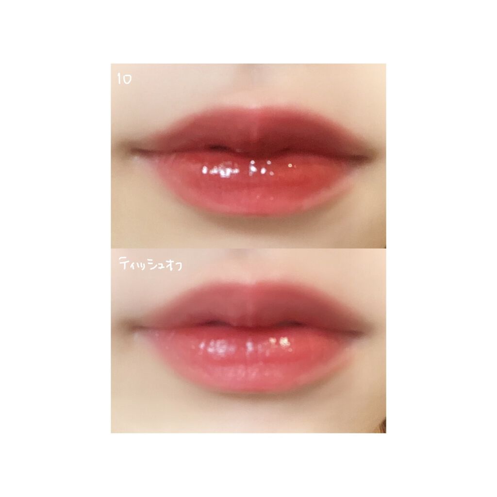 カラーはW010リマーカブルを使用です。みずみずしいテクスチャーで唇になじませやすいです。可愛いカラーでお出かけにもお仕事にも使いやすそうです。しっとりな使い心地で自分に合っていました。ティッシュオフしても色が残り嬉しいです。バニラのような甘...