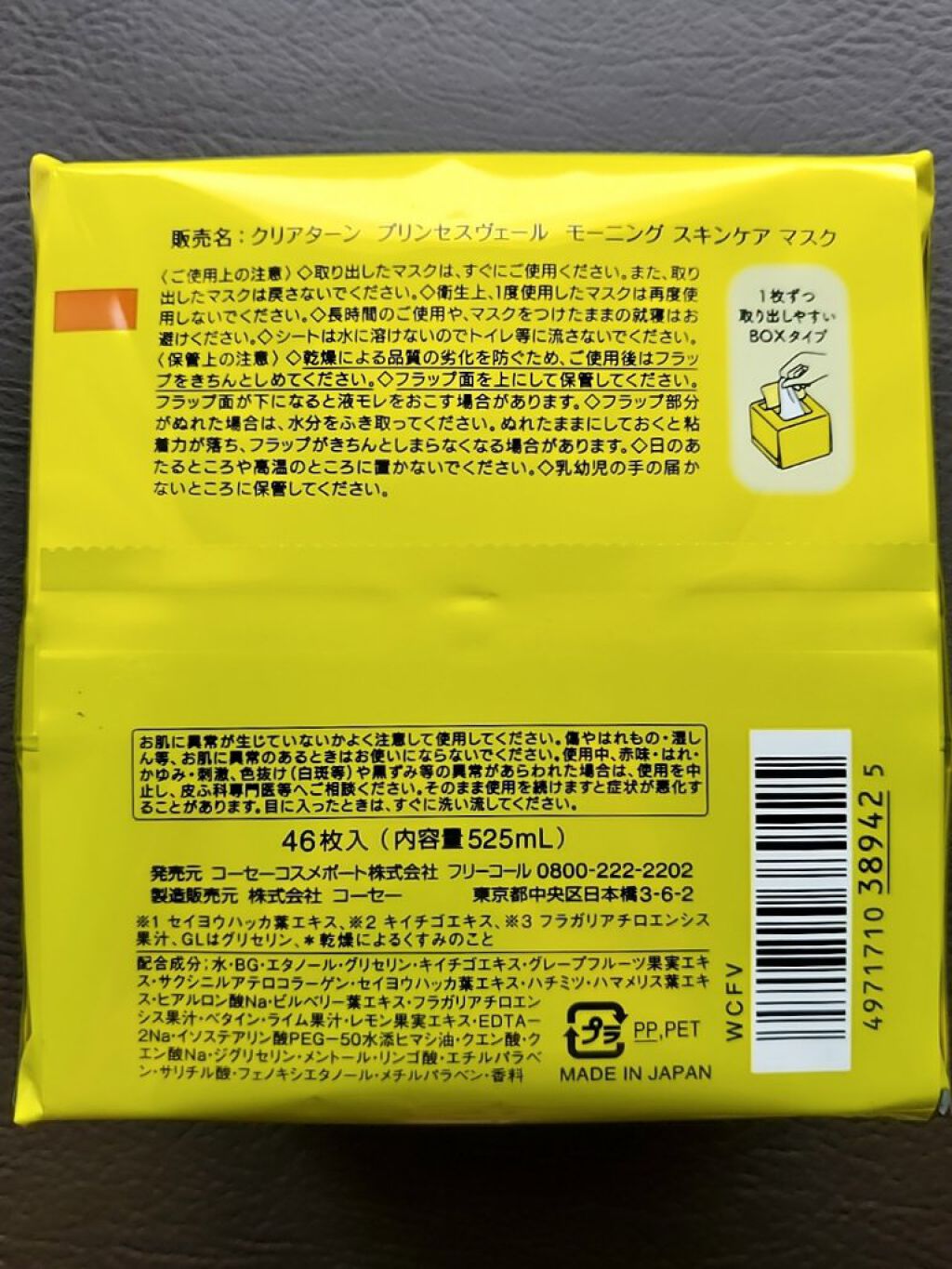 商品詳細情報クリアターン プリンセスヴェール モーニング スキンケア マスク