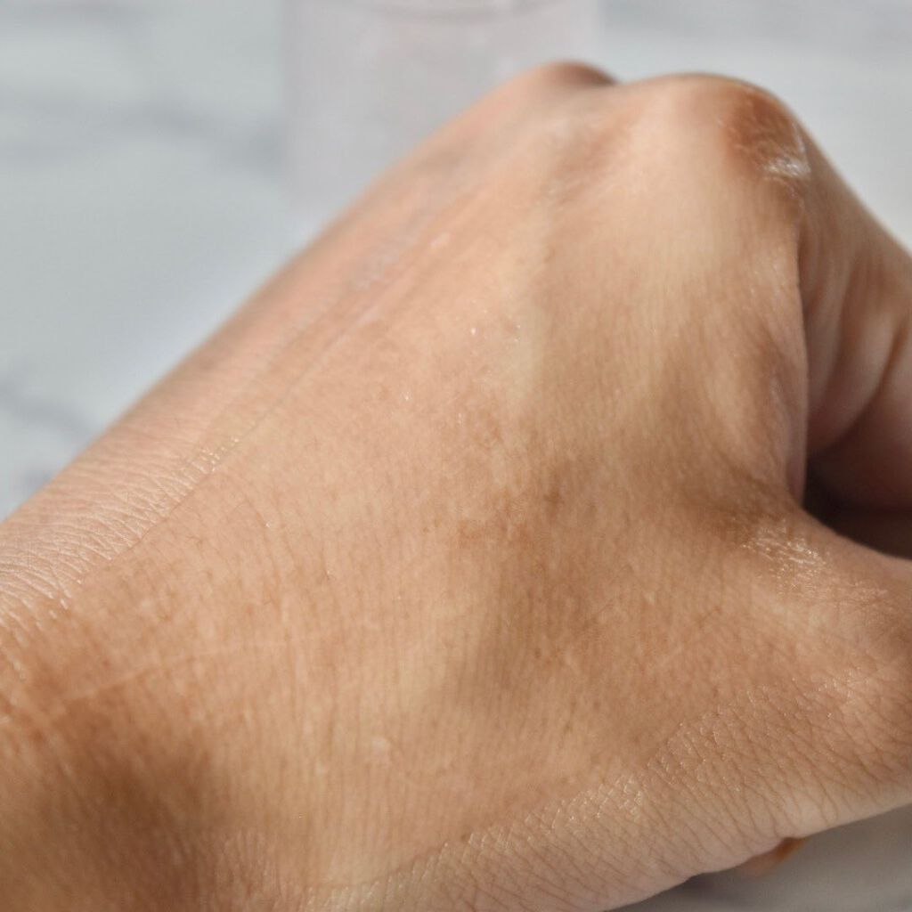 見て下さい。この濡れツヤ感。めちゃくちゃ可愛くないですか? しかもスキンケア成分を80%以上配合したジェルが肌にピタッと密着し、長時間うるおいとツヤをキープし、油分を抑えた伸びの良いテクスチャーでヨレや乾燥にも強く、夏でも崩れ知らずのアイテムです。 粉飛びすることもないので、パウダータイプでは実現できないまるで肌本来の輝きのようなナチュラルなツヤ感を演出してくれます。