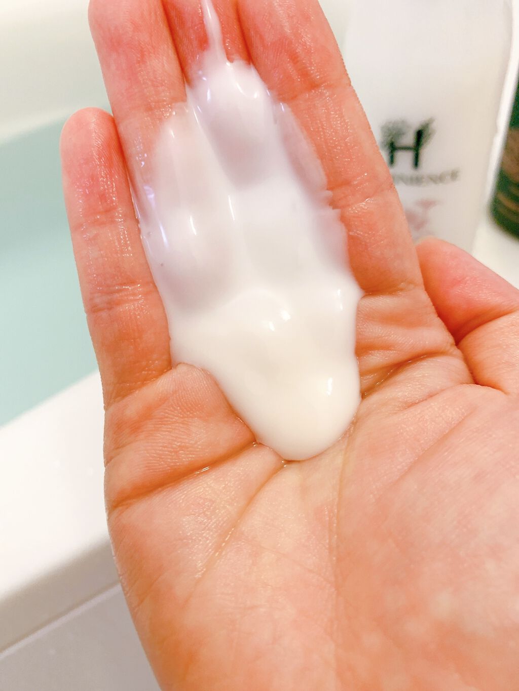 泡タイプだから、プッシュするだけで泡で出てくるところもいいよね。 泡も、きめ細かくてとっても気持ち良いの。 でもふわっと香って、しつこくない甘い香りは良い感じだよ。