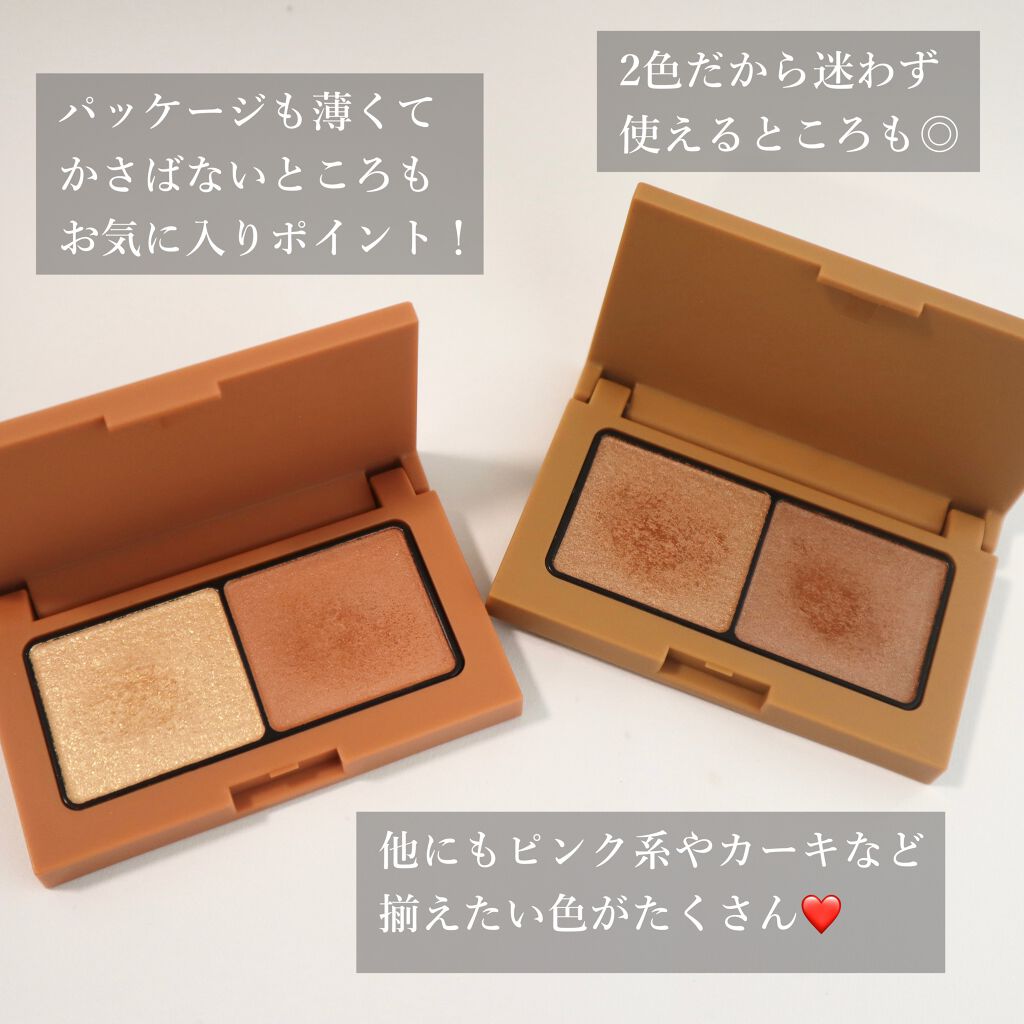 目もとに深みを演出するデュオアイシャドウ。なめらかなツヤを放つ「シルクカラー」と、ぬくもりのあるマットな「カシミヤカラー」の2種をセット。 似合わない人はいないのでは?というニュートラルなベージュ。重ねれば深みも出せるし、サッとひとなでだけすればさりげない陰影を作ることも簡単。 たった2色でアイメイクが完了するので毎朝バタバタな私には強い味方!