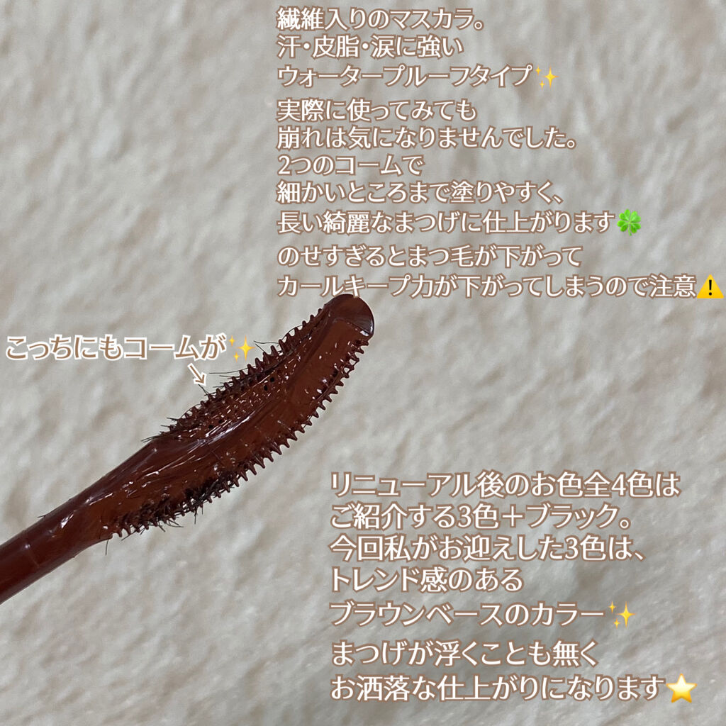 | マスカラランキング第170位 | コームで塗るタイプ。繊維が入っているのでまつ毛がナチュラルに長く見えてカール力も良い! | 詳細を見る |