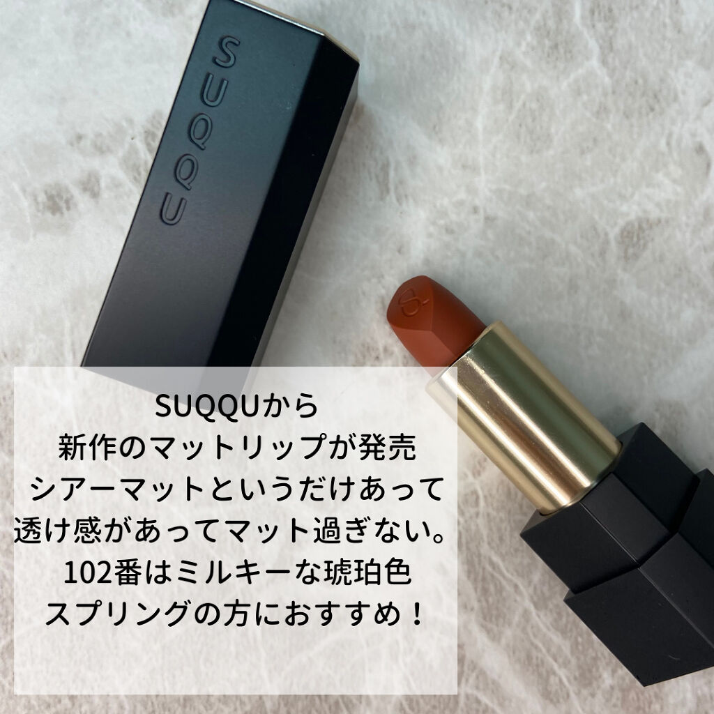 カラーアナリストのmaikoです💖今日はSUQQUシアーマットリップスティック102琥珀糖を紹介します。新しく出たSUQQUの新作リップ。シアーマットというだけあり、マット過ぎない仕上がり。マットリップはベースにリップクリームもつけないと唇の...