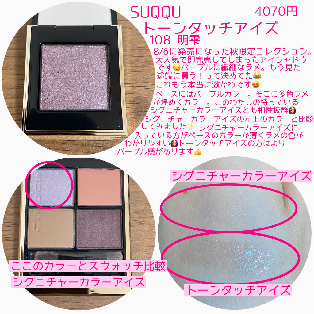 ねむです🌟今日は#SUQQUの#トーンタッチアイズ12秋蛍-AKIHOTARUの紹介をします!クリアラメでトーンタッチアイズの中でも1番人気と言われる12秋蛍🍁ラメが密着してくれて、ゴールドとシルバーのラメでクリアラメなのでどんなアイシャドウ...
