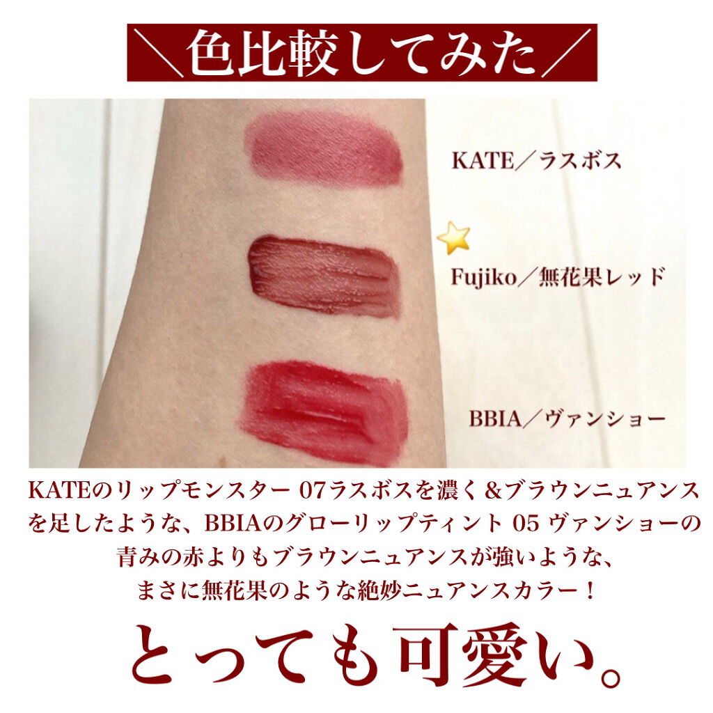 フジコのティントにブルベ冬カラー出たよ…😭 今までイマイチドンピシャな色味がなくて使えなかったんだけど、これは即一軍入り👏🏻 この104はやや青み寄りの深くて鮮やかなゴールドラメ入りチェリーレッドで深みと鮮やか得意なブルベ冬全般におすすめ! プチプラリップにしては1400円代と結構お手頃価格じゃない…?