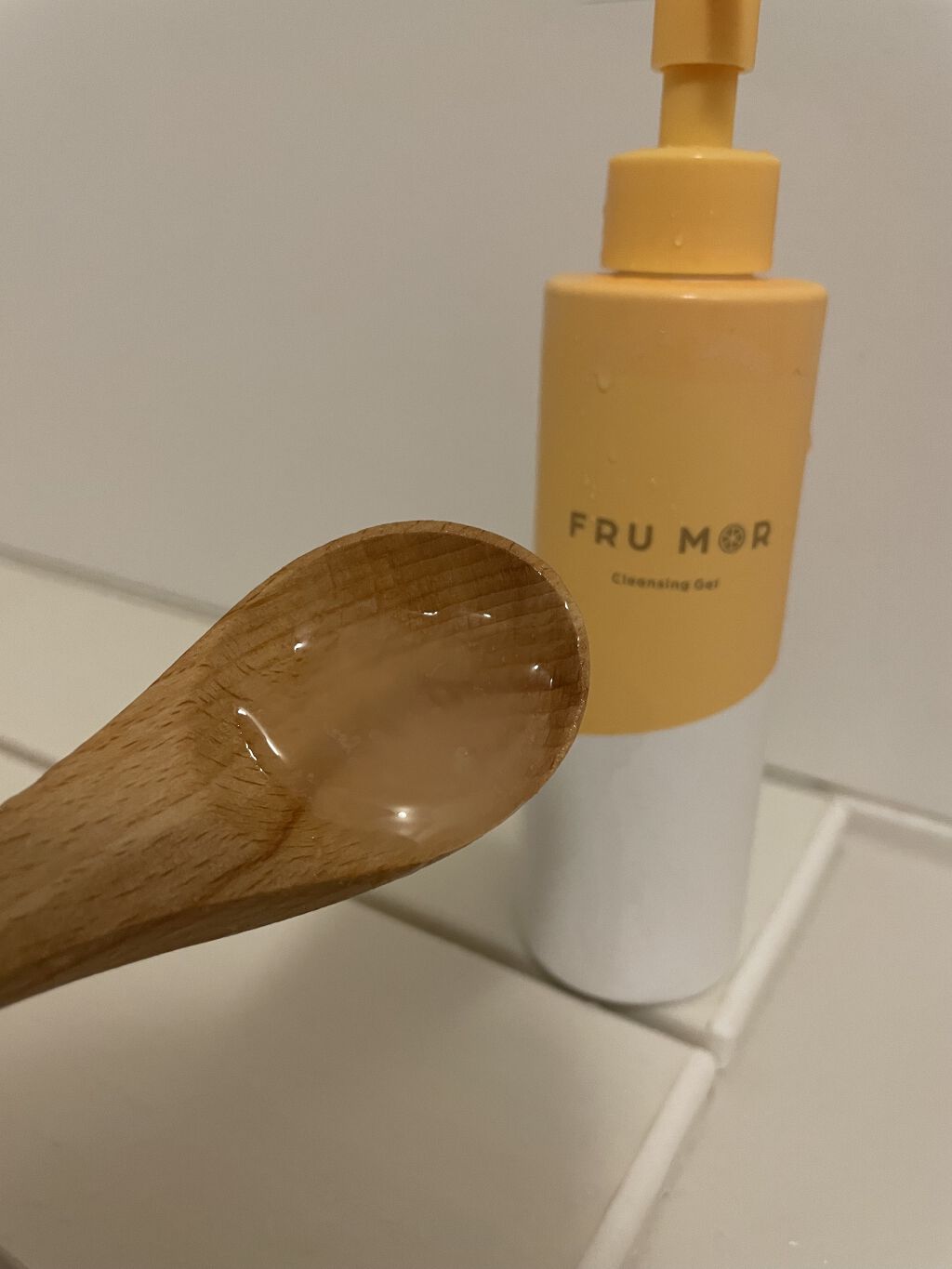 FRUMORフルモアクレンジングジェルぷるぷるのジェルが肌の上で溶けるかのようにみずみずしく伸びていくさらさらとした使い心地のメイク落とし。パッケージには“クレンジング・洗顔料”と書いてあるので、おそらくダブル洗顔不要かな?と想像。ベースメイ...