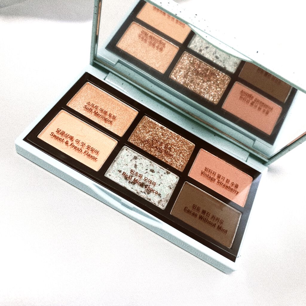 - チャーミングに仕上げるスペシャルキット チョコミントのように甘く爽やかな色合いのアイシャドウパレットとキュートなブラシがキットに。思わずクセになっちゃう絶妙なハーモニーでまぶたをチャーミングに色づけて。可愛らしさを印象づけるピンクコーラルからカカオのようにほろ苦いブラウンまで、捨て色なしの6色であなたもチョコミントの虜に…!