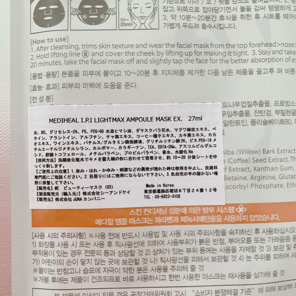 商品詳細情報MEDIHEAL I.P.IライトマックスAPマスクEX