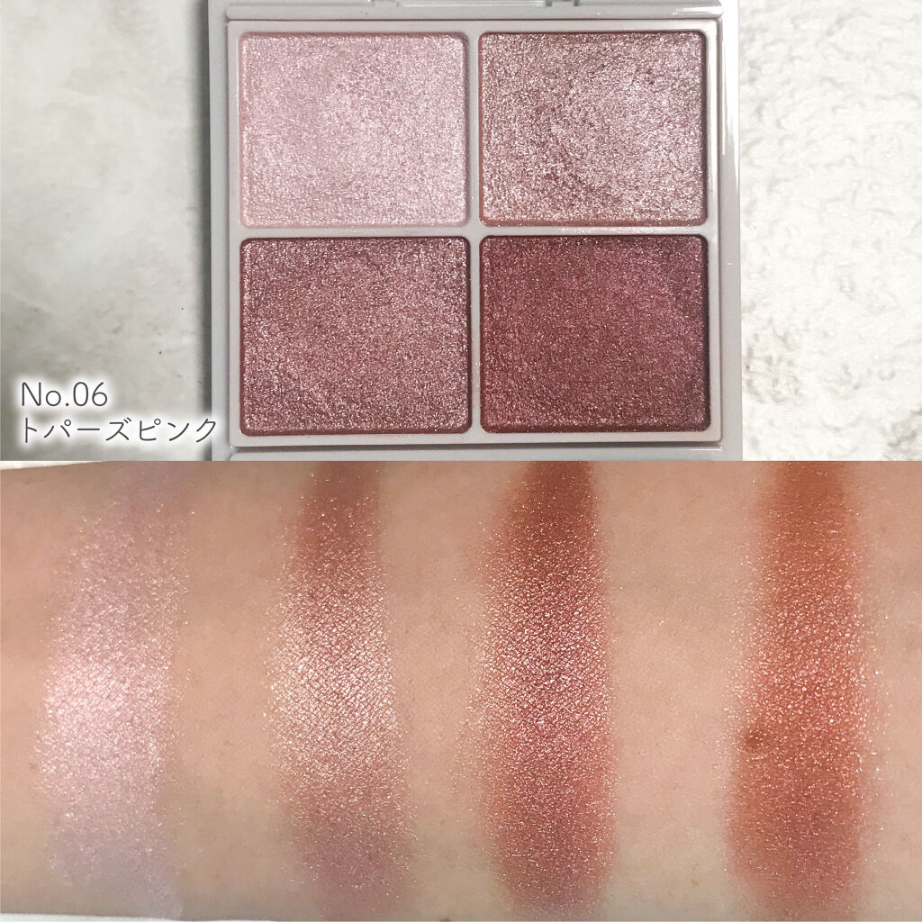 キャンメイクシルキースフレアイズ06トパーズピンク¥825◇質感(パール4)光沢感のあるパールに少しラメが入っていて輝き方がとっても綺麗です💎メタリックほどの光沢感はありませんが、ラメほどキラキラした感じも強くなく、本当に絶妙な質感をしていま...
