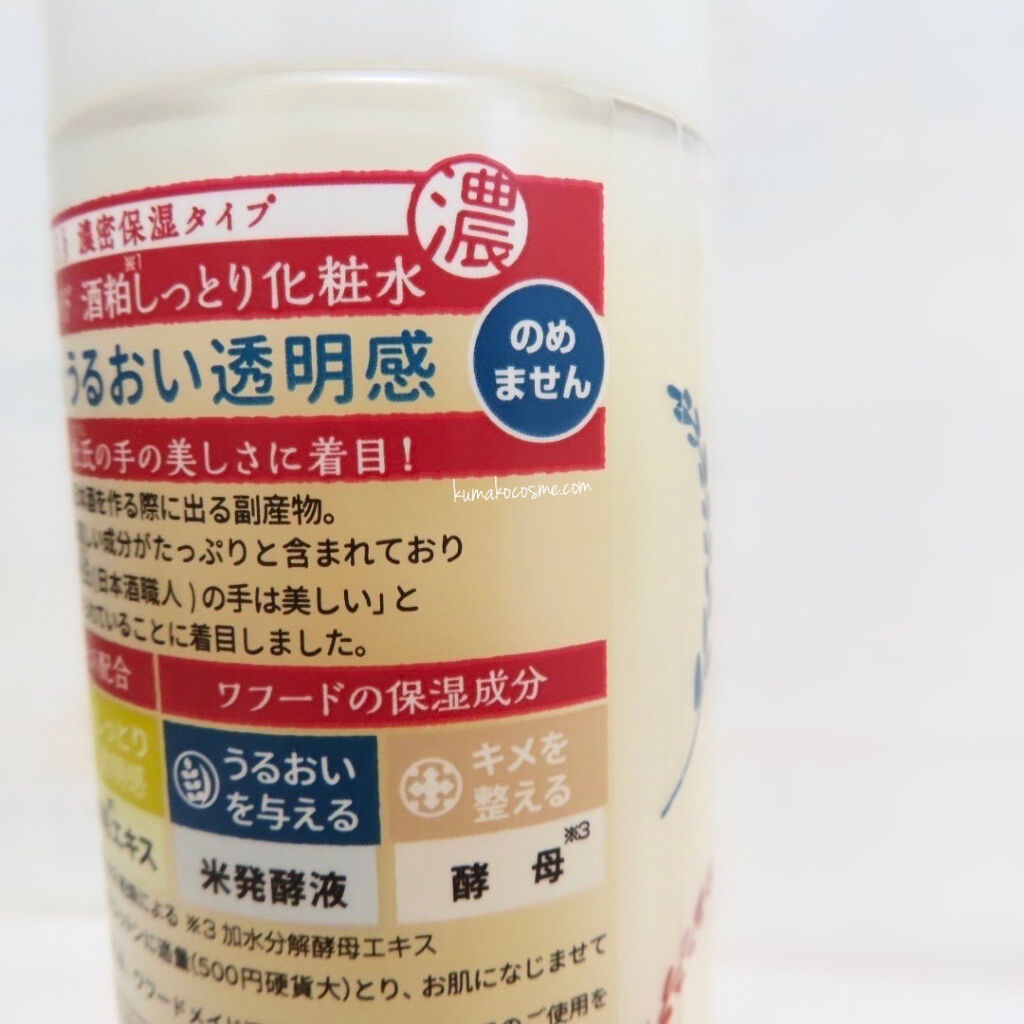 - 酒粕しっとり化粧水は“日本酒職人の手は美しい”という言い伝えをヒントに、熊本県河津酒造のこだわりの酒粕から抽出したオリジナルの酒粕エキス※2を配合した高保湿タイプの化粧水。とろりとしたテクスチャーが肌の奥(角層)まで浸透、乾燥によるくすみを防いでうるおって透明感のある肌へ導きます。 ※2 保湿成分