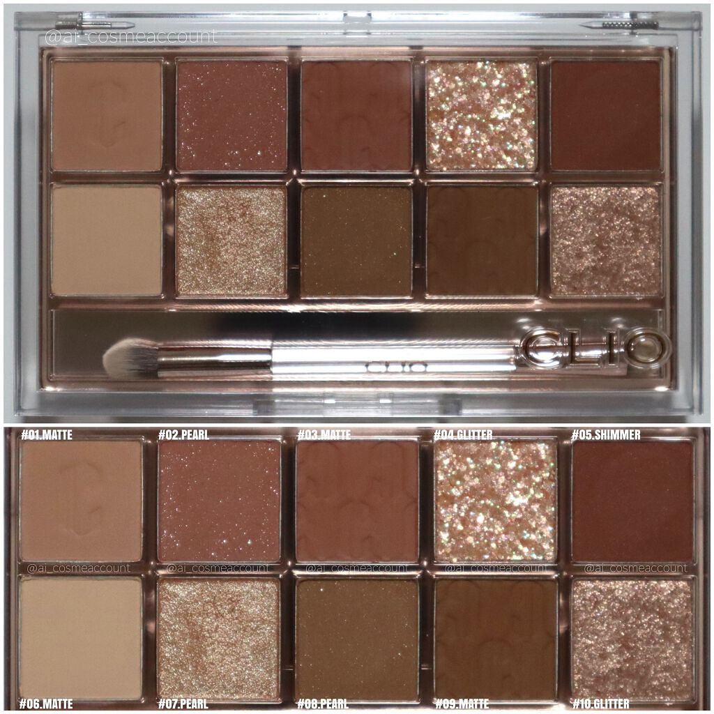 [CLIOPROEYEPALETTE全色スウォッチ]CLIOプロアイパレットの1号〜10号と、StreyKidsコラボ限定色の100号・101号の全色スウォッチです。フラッシュ撮影の全色スウォッチはコチラ↓https://lipscosme....