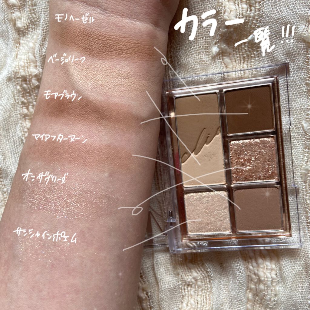 - 同系色陰影カラーと上品でクリアなグリッターの組み合わせの必要なカラーだけ詰め込んだミニアイパレット!