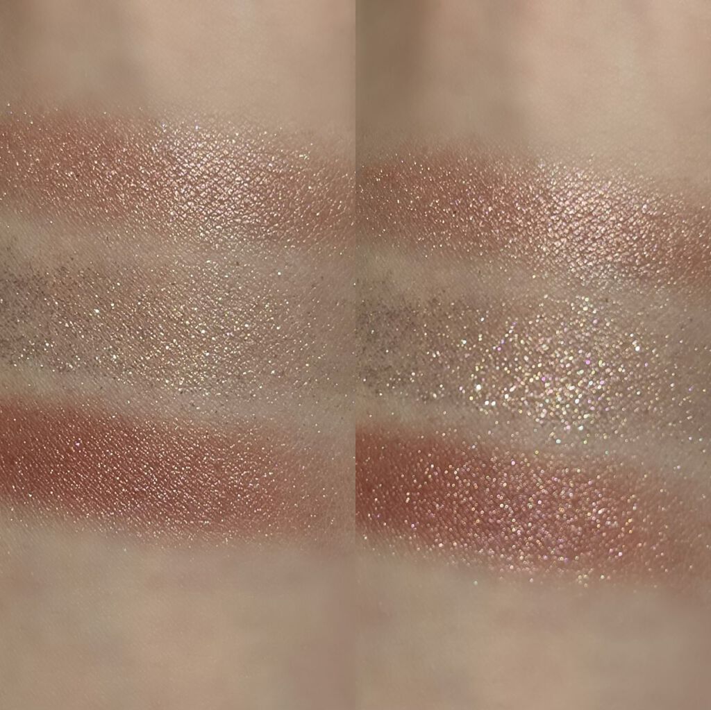 ADDICTIONの秋コレのパレットの中に入っているのに気づかず単色をお迎えしてしまいました😂笑 いざ単色で手に取ってみると可愛すぎて…! 太陽光での撮影なので少し暖かい感じに写っています。 1枚目でぎっしりの多色ラメ、伝わりますか?🥺 シンプルなメイクにたっぷり乗せてあげるのが可愛いです♡
