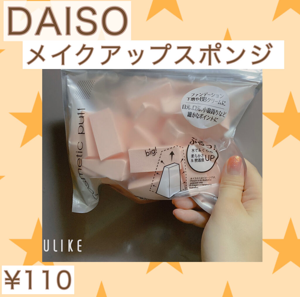 【使った商品】DAISOメイクアップスポンジ【商品の特徴】メイクアップスポンジ【使用感】もちもち【良いところ】水ありも使える【イマイチなところ】なし【どんな人におすすめ?】安いスポンジを探してる人【使い方】水を含ませてしぼってメイクをなじませ...