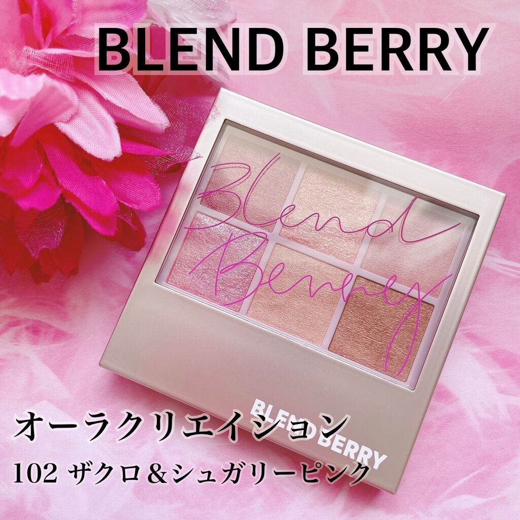 本日のアイシャドウ♡#BLENDBERRY#オーラクリエイション102ザクロ&シュガリーピンクどのカラーもめちゃくちゃ可愛いパレット❤️今日は、右下のブラウン系を二重幅まで。右下のラメピンクをまぶたへ。右上の赤みカラーを目尻へ締色として。真ん...