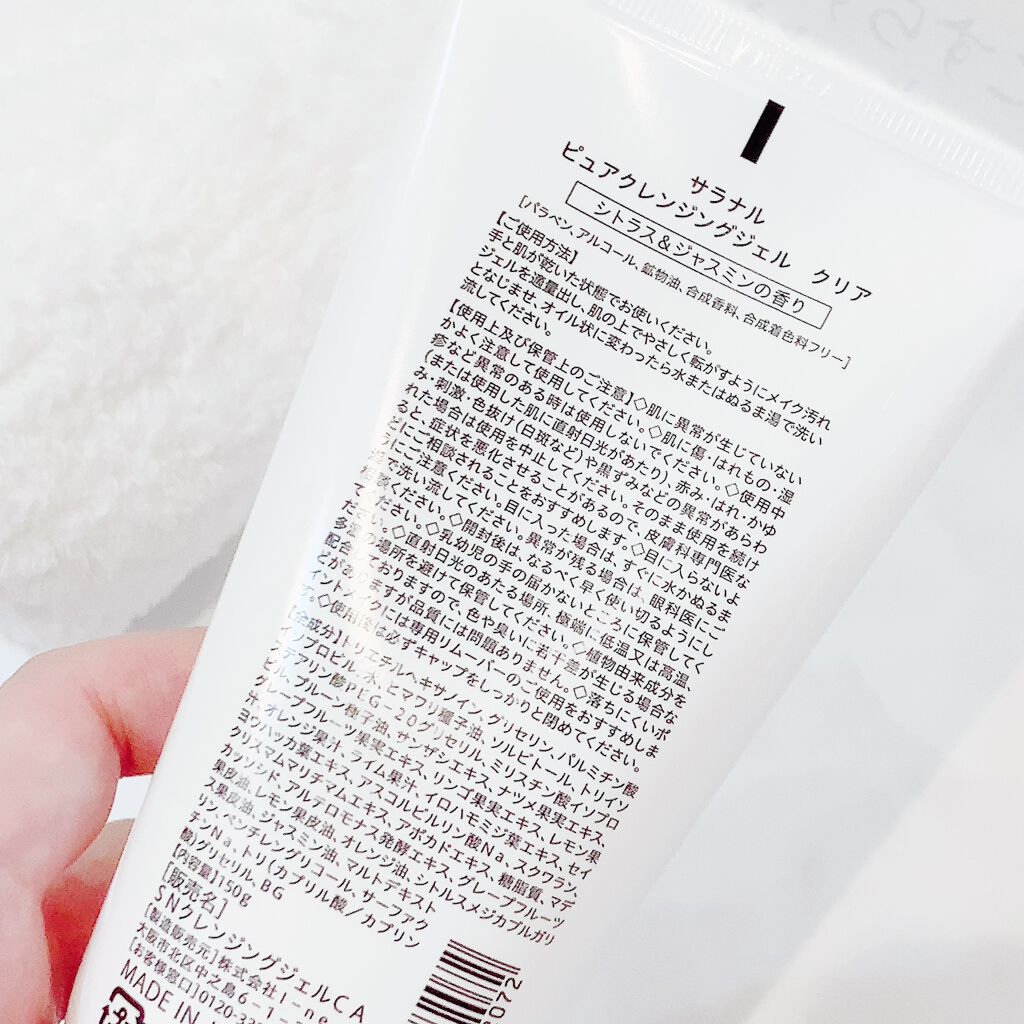 - <Salanaru ピュアクレンジングジェル クリア> 水、ペンチレングリコール、BG、グリセリン、ソルビトール、スクワラン、セイヨウハッカ葉エキス、ライム果汁、レモン果皮油、トリエチルヘキサノイン、サンザシエキス、パルミチン酸イソプロピル、アスコルビルリン酸Na、アルテロモナス発酵エキス、ヒマワリ種子油、オレンジ油、トリ(カプリル酸/カプリン酸)グリセリル、トリイソステアリン酸PEG-20グリセリル、グレープフルーツ果皮油、ミリスチン酸イソプロピル、クリスマムマリチマムエキス、レモン果汁、グレープフルーツ果実エキス、オレンジ果汁、ナツメ果実エキス、リンゴ果実エキス、マデカッソシド、糖脂質、サーファクチンNa、プルーン種子油、アボカドエキス、マルトデキストリン、ジャスミン油、シトルスメジカブルガリス果皮油、イロハモミジ葉エキス <Lee Izumida コラボパッケージ> 水、ペンチレングリコール、BG、グリセリン、ソルビトール、スクワラン、セイヨウハッカ葉エキス、ライム果汁、レモン果皮油、トリエチルヘキサノイン、サンザシエキス、パルミチン酸イソプロピル、アスコルビルリン酸Na、アルテロモナス発酵エキス、ヒマワリ種子油、オレンジ油、トリ(カプリル酸/カプリン酸)グリセリル、トリイソステアリン酸PEG-20グリセリル、グレープフルーツ果皮油、ミリスチン酸イソプロピル、クリスマムマリチマムエキス、レモン果汁、グレープフルーツ果実エキス、オレンジ果汁、ナツメ果実エキス、リンゴ果実エキス、マデカッソシド、糖脂質、サーファクチンNa、プルーン種子油、アボカドエキス、マルトデキストリン、ジャスミン油、シトルスメジカブルガリス果皮油、イロハモミジ葉エキス