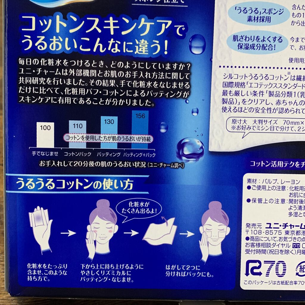 - ポイント①1/2の化粧水で驚くほどうるおう※1 じゅわっと染み出るスポンジ構造採用。化粧水の出てくる量がシルコットの2倍以上で、コットン本体に化粧水を殆ど残しません!※1当社製品比 ポイント②パッティングしても、はがしてもパックしても毛羽立たず、やわらか ポイント③2枚にはがせて目元にピタッと密着 2枚にはがしてパックできます。 目元にフィットしやすいカーブ形状です。